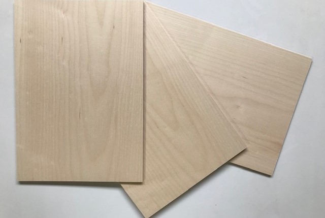 Sperrholz Ahorn, 5,5mm Materialstärke, 5-schicht, Größe 500x300mm. Exklusives Sperrholz mit Deckfurnier in Ahorn. Beidseitig in hochwertiger A-Furnier Qualität, geschliffen und kalibriert.