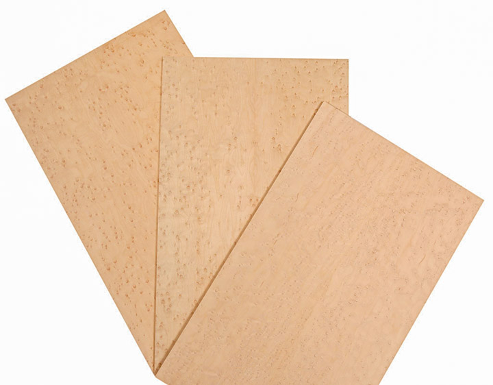 Sperrholz Vogelaugenahorn, 5,5mm Materialstärke, 5-schicht, Größe 500x300mm. Exklusives Sperrholz mit Deckfurnier in Vogelaugenahorn. Beidseitig in hochwertiger A-Furnier Qualität, geschliffen und kalibriert.