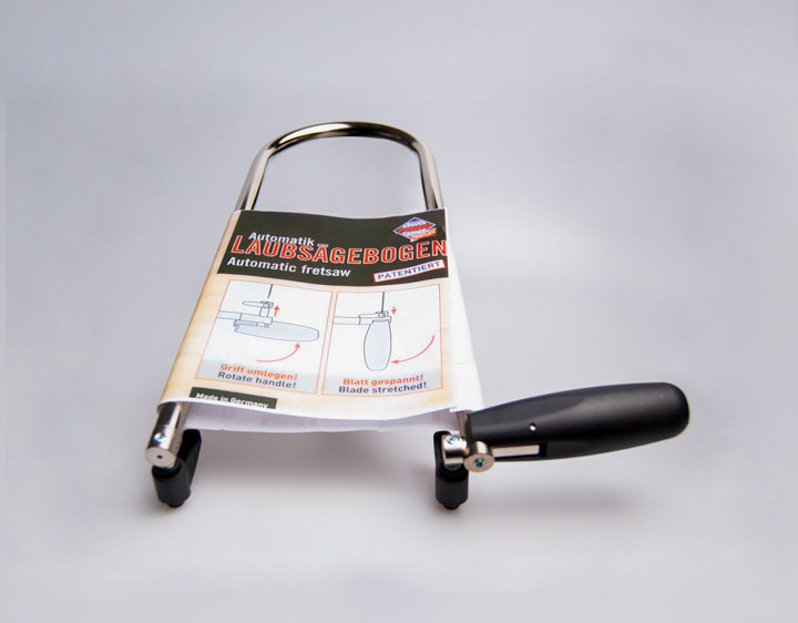 Laubsäge, Stahlrohr 13mm, vernickelt, Schnellspannfutter, mit verstellbaren Kunststoff Krafthebel.
