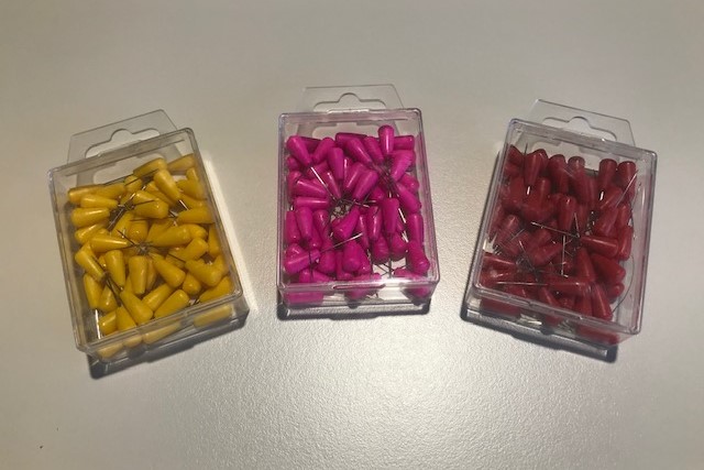 Konstruktiv sind die Edelstahl-Nadeln aus AISI 304 bzw. DIN 1.4301 und der Kunststoffkopf sehr fest miteinander verbunden, sodass sich auch bei kräftigem Drücken oder Ziehen der Kopf nicht löst und es zu Stichverletzungen kommt.